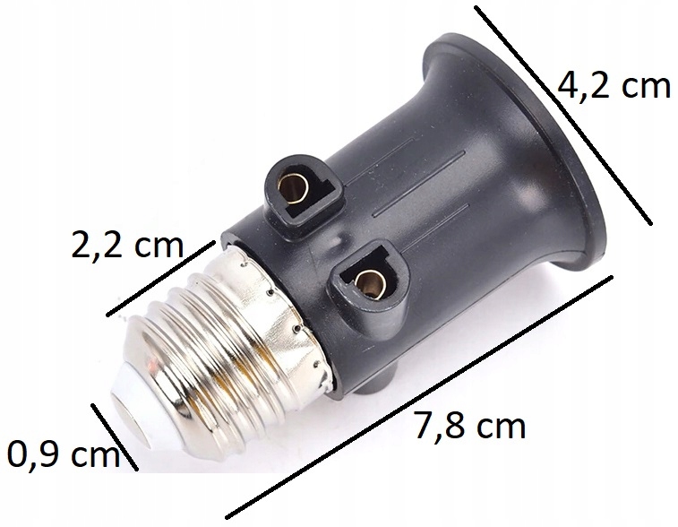 Разветвитель лампы предназначен для подключения одной лампы и двух незаземленных вилок (с двумя контактами). Это совместим с классической резьбой для лампочки E27, что означает, что ее можно легко ввинтить в стандартный патрон лампы.