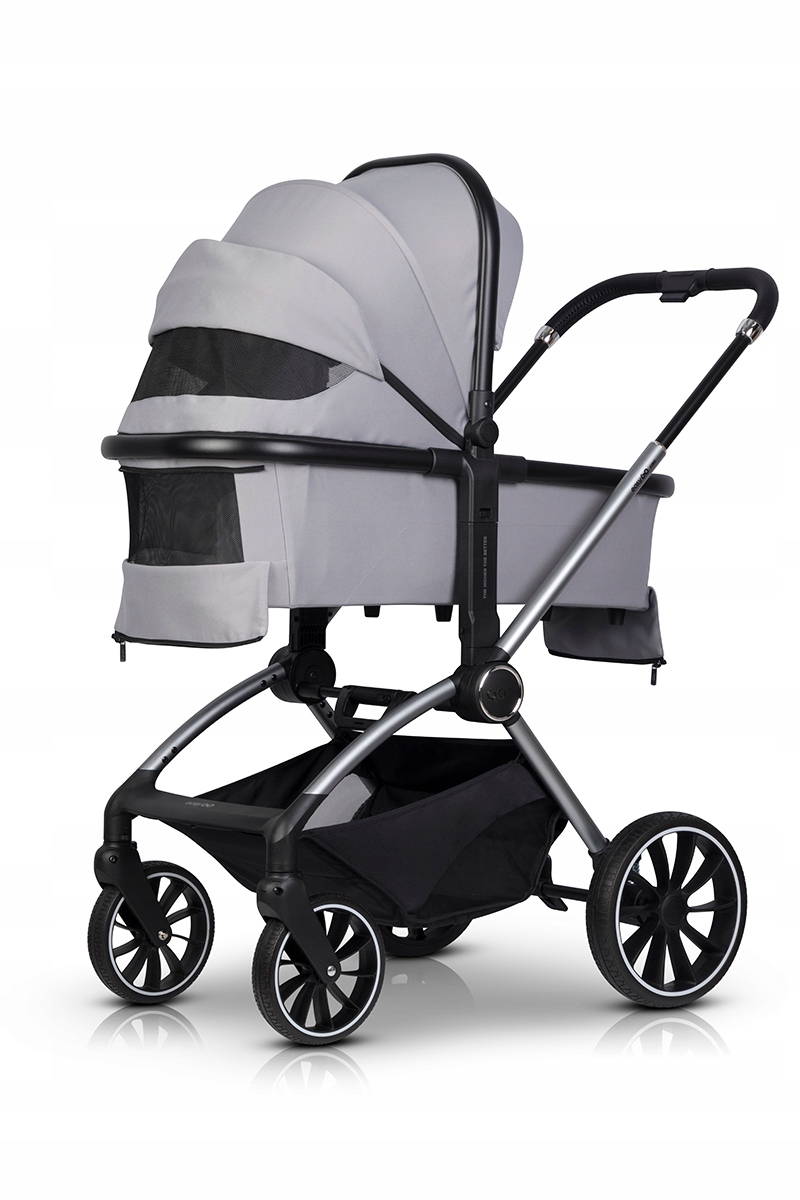 Коляска Джиро доступна в 2 в 1 сетевых сетях с гондолой и сиденьем, 3 в 1 дополнительно с автомобильным сиденьем Buz Easygo или даже 4 в 1 с автомобильным сиденьем и базой Isofix Easy Buz Pro. Адаптеры для автомобильных сидений также доступны. Это позволяет вам собирать тележку вместе с сиденьем независимо от того, установлен ли она на передней или задней направлении. Прыжок амортизатора настолько велик, что коляска создает впечатление мягкого с первых дней использования, хотя ребенок все еще легкий. Передние колеса крутятся и имеют прямую -Straight -Straight -Straight Lock Lock. Широкая колесная база обеспечивает легкую скручивание и маневрирование в узких комнатах. Большое так много колес и форма структуры троллейбуса обеспечивается легким для плавания на подъездной дорожке к бордюру.