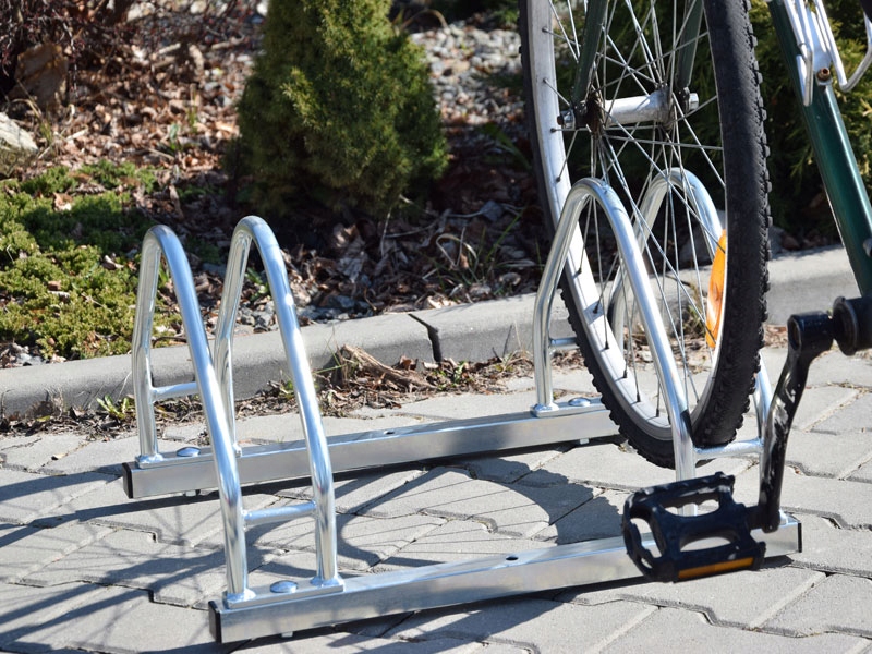 Двусторонняя парковка для велосипедов ECHO-2. Подходит для всех типов и размеров велосипедов (кроме велосипедов с дисковыми тормозами). Возможность крепления подставки к земле.