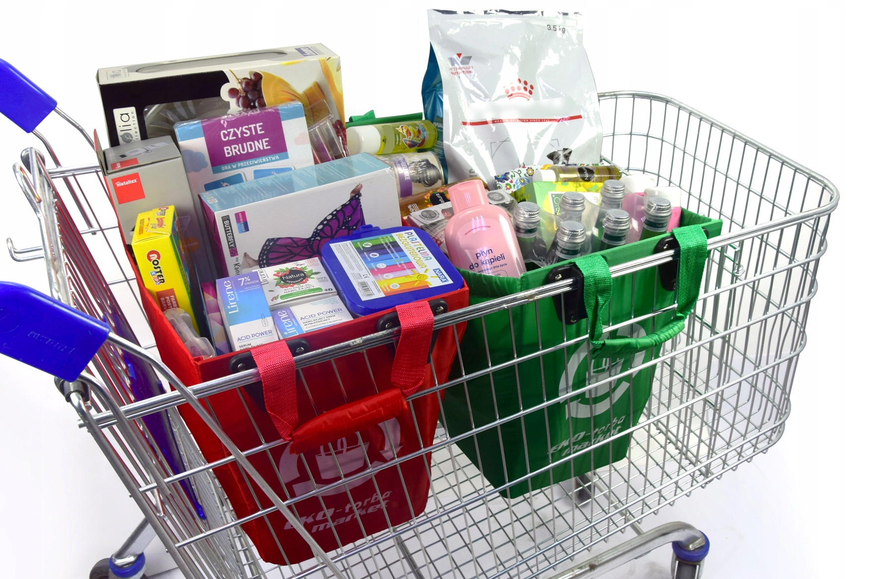 Сумка была специально разработана для использования в тележках для покупок, что означает, что она идеально вписывается в стандартные размеры тележек для покупок и обеспечивает легкое и безопасное хранение продуктов.