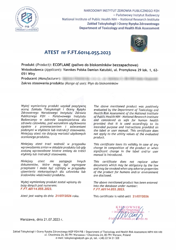 Биокаминное топливо Ecoflame в настоящее время является единственным биотопливом второго поколения на польском рынке, производимым из материалов, которые не конкурируют с пищевыми продуктами, то есть древесины и сельскохозяйственных отходов.