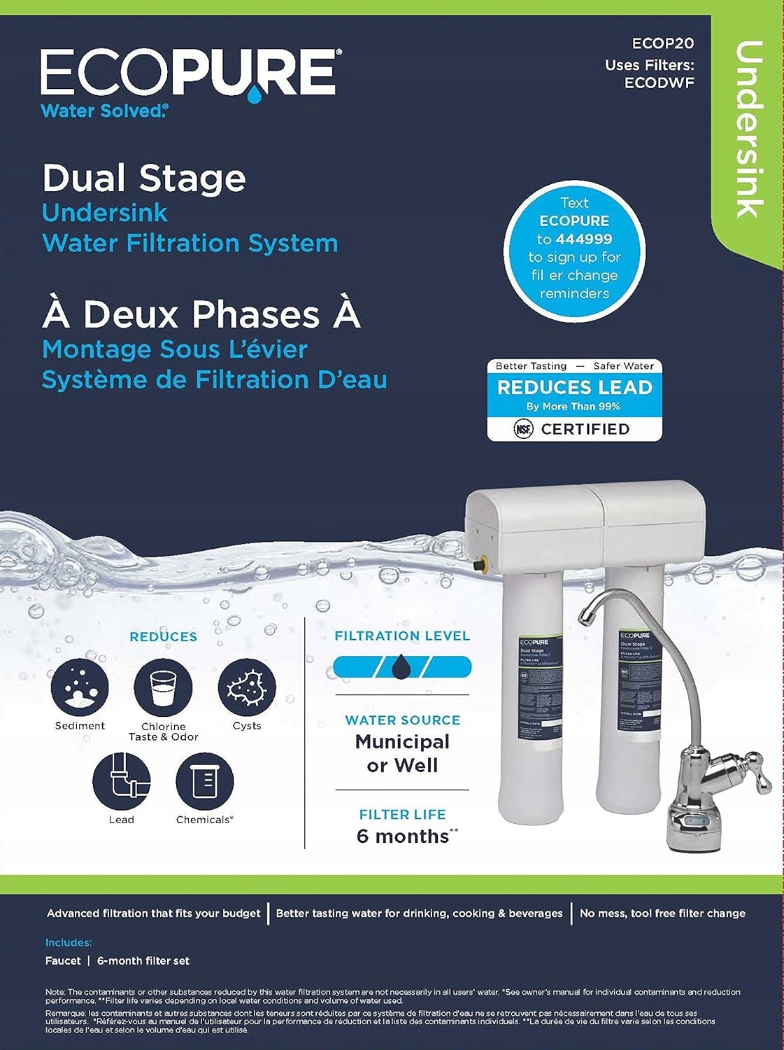 EcoPure ECOP20 Двухступенчатая система фильтрации воды под раковиной ДЛЯ ПИТЬЕВОЙ ВОДЫ (КОМПЛЕКТ КАК ПОКАЗАНО НА ФОТО, ОТКРЫТАЯ КОРОБКА)