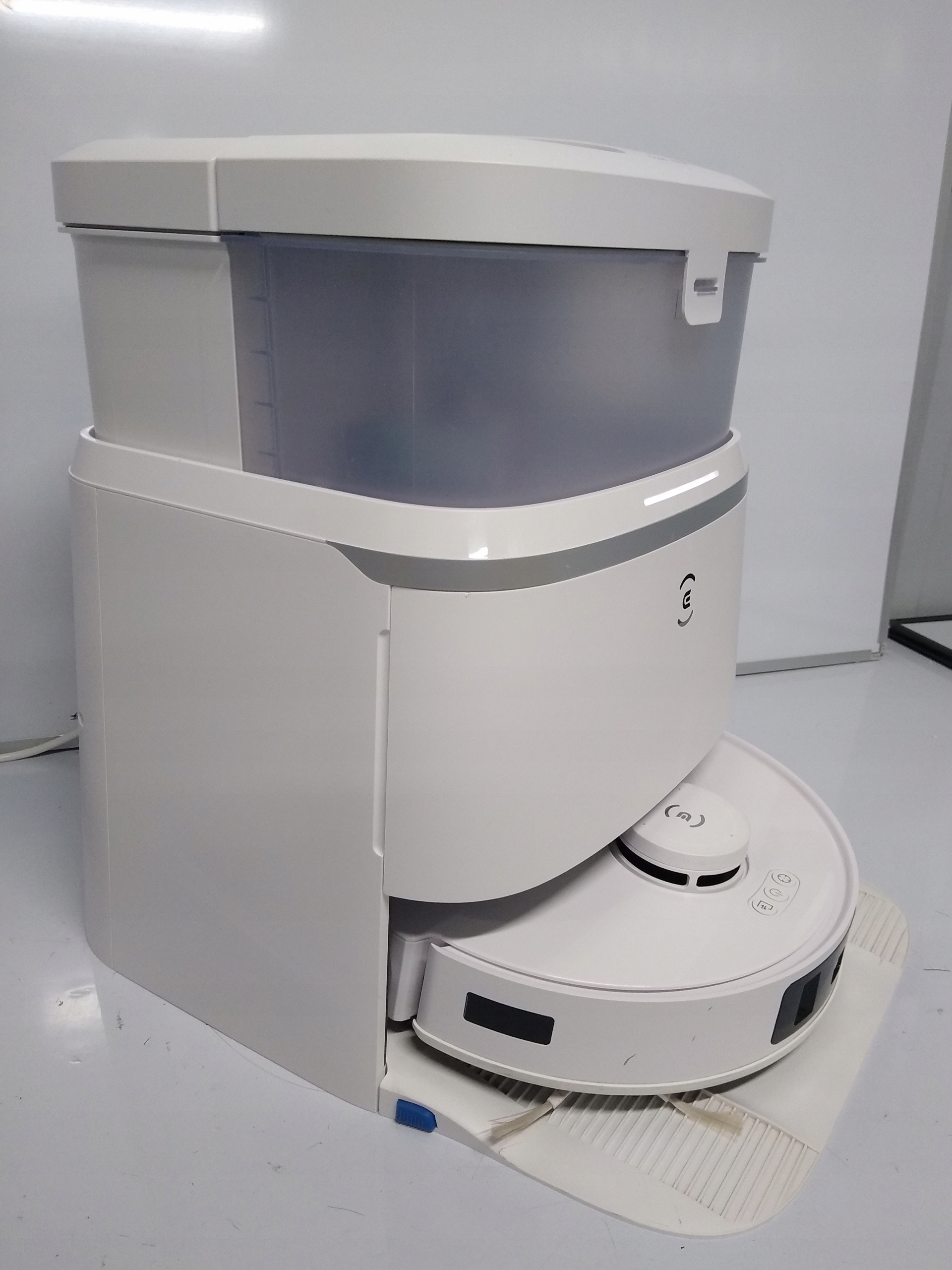 Изделие б/у, имеет следы использования, царапины, потертости и загрязнения, работоспособно (заряжает, запускается, чистит - работает исправно). По неизвестным причинам (нет информации в приложении) диод в роботе горит желтым, а диод в станции - белым. Проверено с приложением.