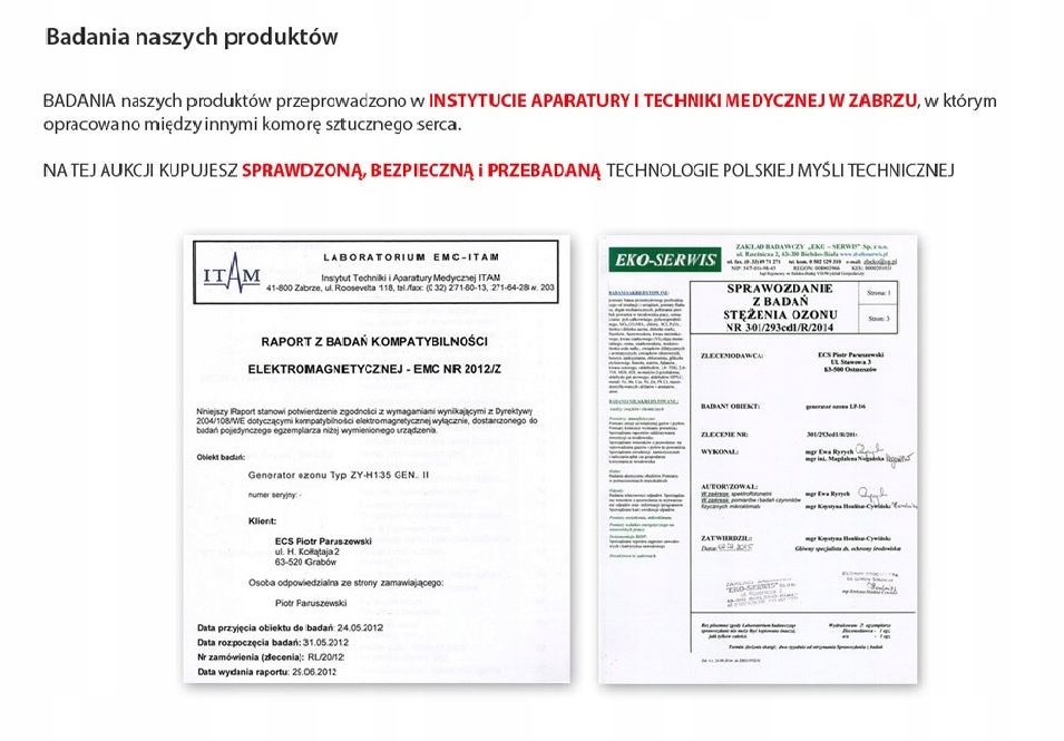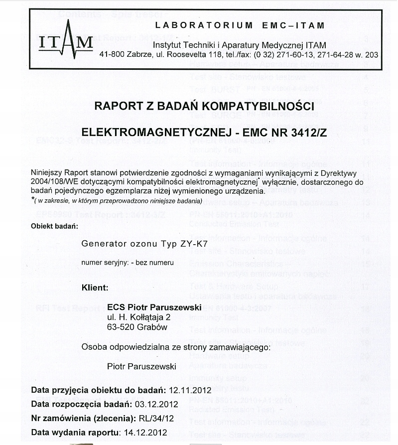 Наши генераторы прошли испытания в одной из крупнейших, аккредитованных и независимых лабораторий в Польше. Большинство отчетов об испытаниях о реальном постоянном КПД наших устройств и результатах испытаний на ЭМС и НН.