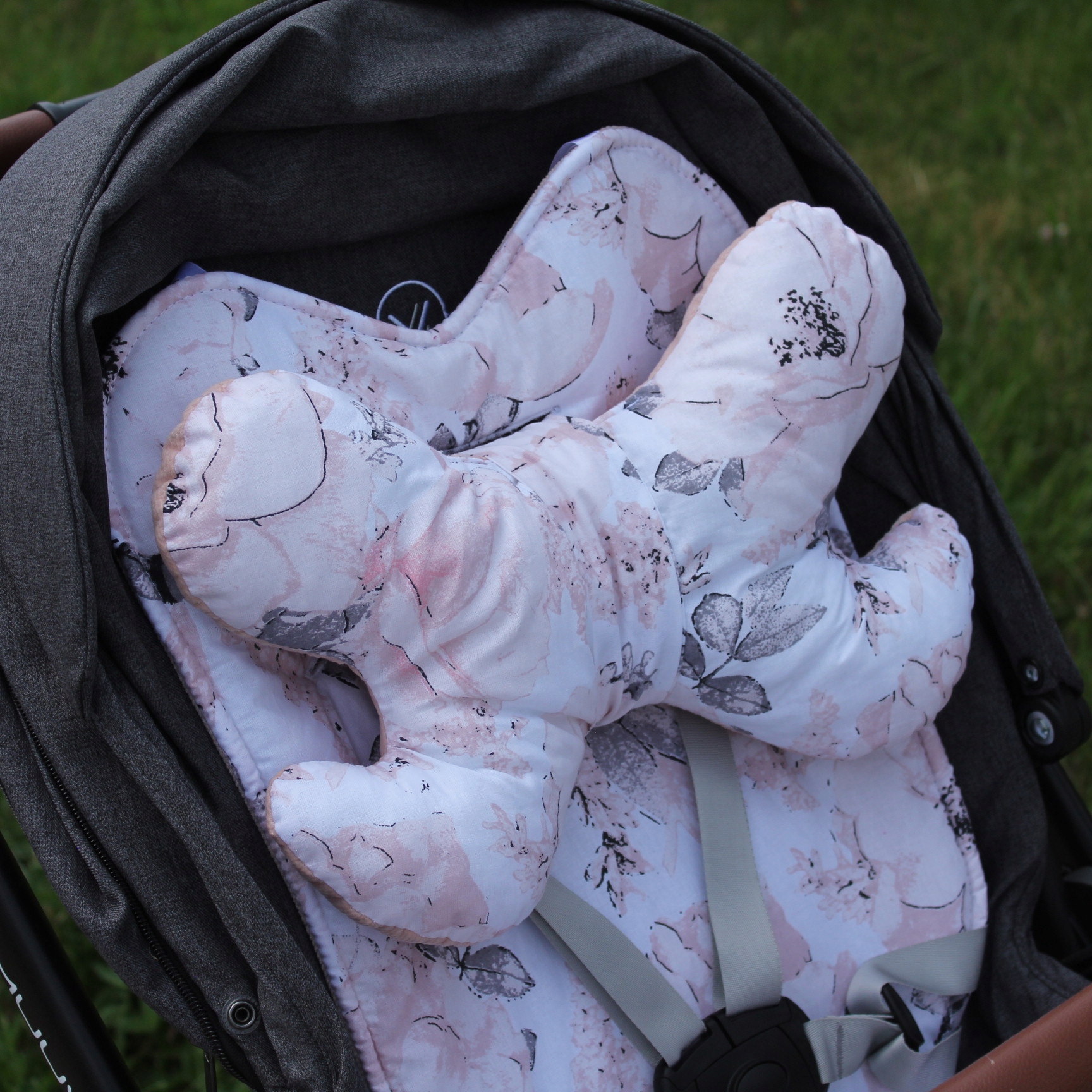 Бабочка прикреплена к специальному съемному ремню. Он заполнен силиконом, упругим мячом. Это как двойная стелька и обеспечивает правильную позицию и защищает тонкую голову ребенка во время прогулок.