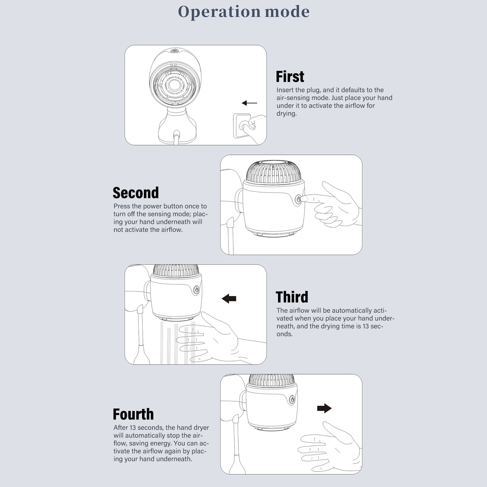 4. ЭКОНОМИЯ ПРОСТРАНСТВА: Тонкая сушилка для рук для ванной комнаты имеет минималистичный дизайн и крепится на стену, плотно прилегая к поверхности, что позволяет максимально увеличить пространство в домах, гостиницах или общественных туалетах.