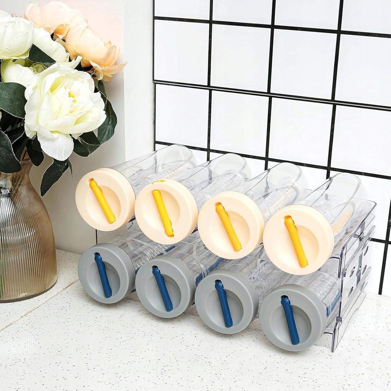 Этот четырехъярусный органайзер для бутылок с водой вмещает до четырех бутылок на каждом ярусе, всего 16 контейнеров. Идеально подходит для хранения бутылок разного размера, чашек, термосов, вина и напитков.