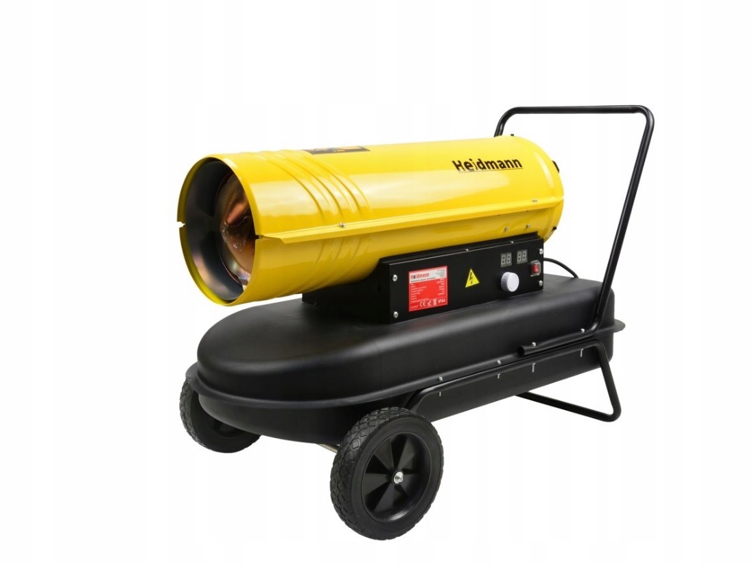 Нагреватель HEIDMANN имеет ручку и оснащен колесами, подставками и поручнями для облегчения его транспортировки.Дополнительным преимуществом нагревателя является подача топлива под высоким давлением, благодаря чему нагреватель КПД больше при том же расходе топлива, что и в аппаратах низкого давления.