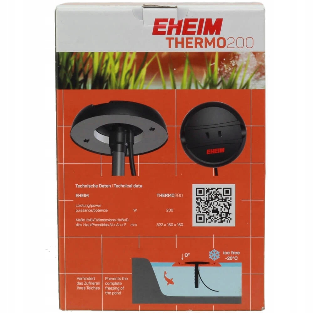 Eheim Thermo 200 — нагреватель, предназначенный для садового пруда. Это позволяет сохранять лунку даже при температуре -20°С. Это предотвращает полное замерзание пруда и обеспечивает правильный газообмен. Мощность 200 Вт. Длинный кабель питания.