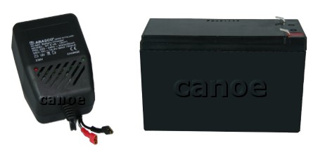 Питание эхолота состоит из гелевого аккумулятора напряжением 12 В емкостью 7 Ач, который является наиболее часто используемым источником напряжения для эхолотов. Время работы зависит от модели эхолота и обычно составляет 6-12 ч. Для зарядки аккумулятора используется специальное автоматическое зарядное устройство. Он имеет два диода для индикации состояния зарядки. Красный цвет означает, что зарядное устройство подключено к источнику питания, а зеленый светится во время зарядки и гаснет после зарядки.