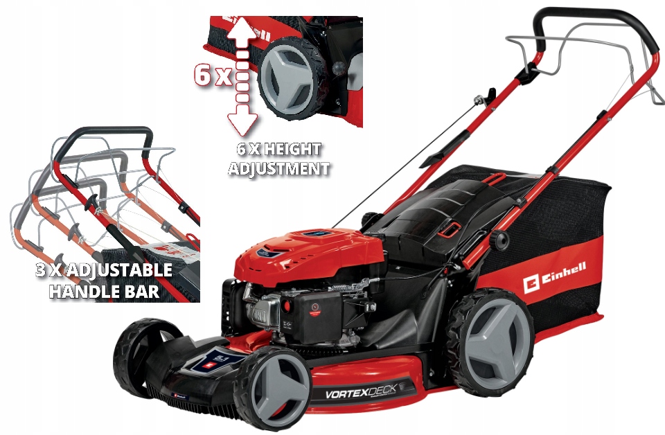 Благодаря функции 5 в 1, косилка позволяет легко переключаться между кошкой, мульчированием, боковым выбросом, задней раскаяния и сбором. Инновационная технология вихря и агрегат для резки металла обеспечивает точную резку, а регулировка высоты центрального скачивания с 6 позициями позволяет легко регулировать рабочую высоту. Коток оснащена большой травяной корзиной с емкостью 80 литров, приводными колесами и регулируемым складным рулевым колесом, который обеспечивает удобство использования и хранения.