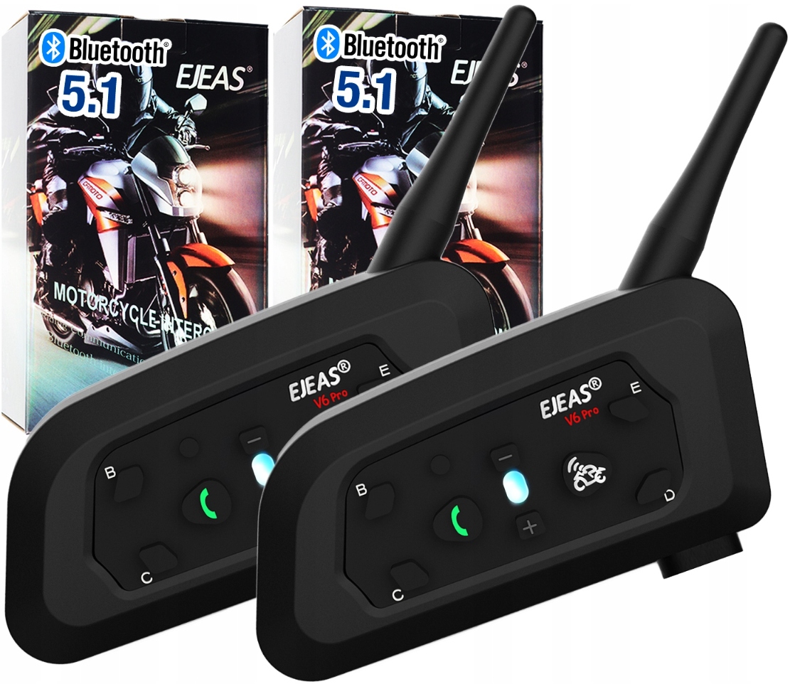 Мотоциклетный интерком EJEAS V6 PRO USB-C 2024 Bluetooth 5.1 для шлема 2 шт.