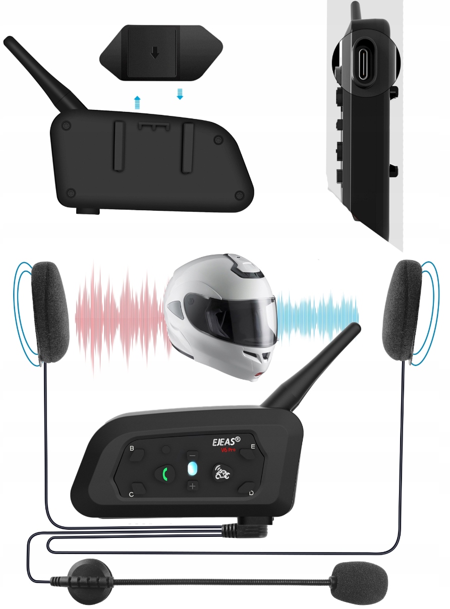 - Инновационный мотоциклетный интерком EJEAS V6 PRO TYP-C 2024