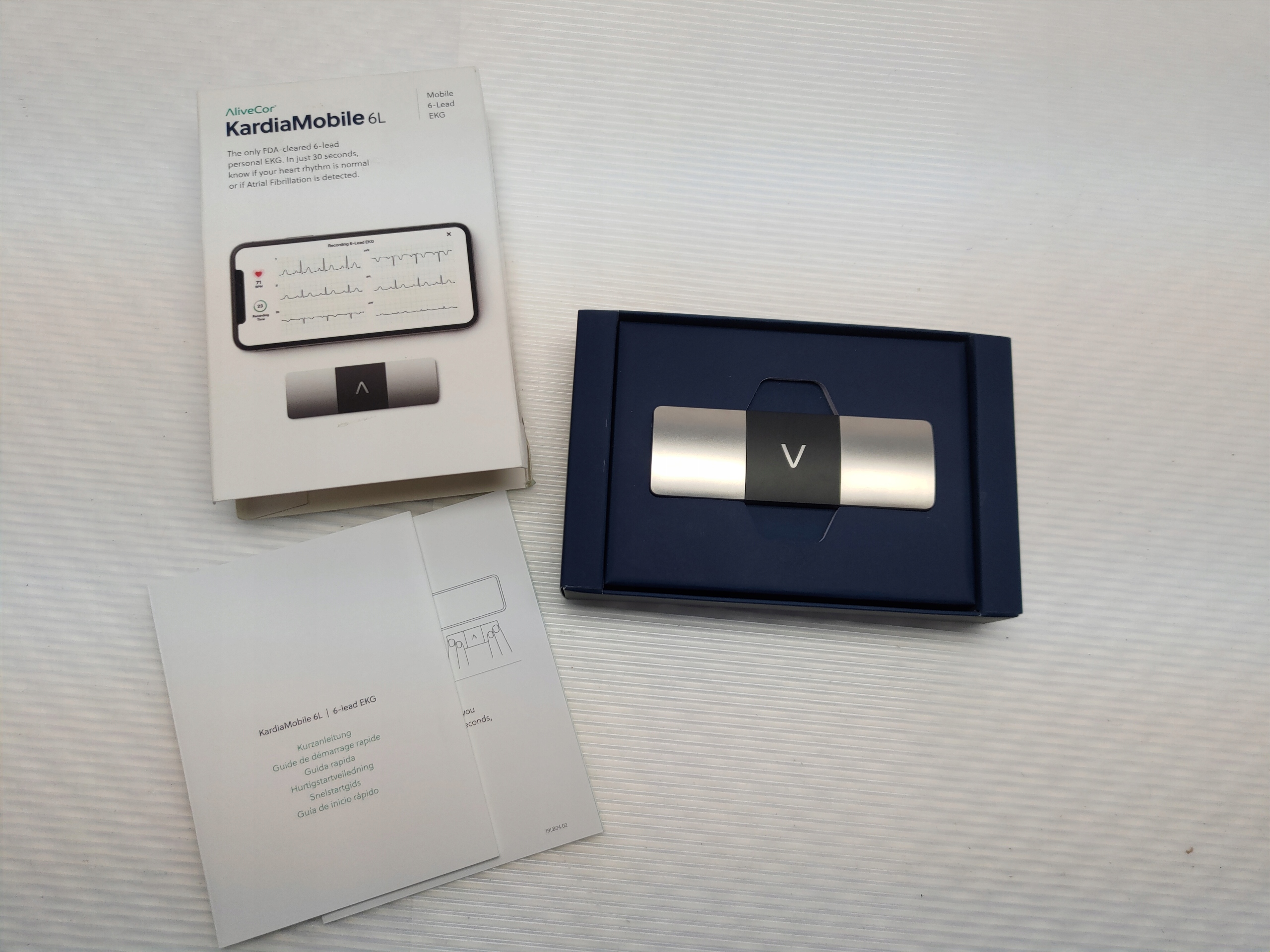 Последний продукт от AliveCore KardiaMobile 6L — это первый в мире мобильный 6-канальный ЭКГ, имеющий американский сертификат FDA и европейский сертификат CE. KardiaMobile 6L — полностью безопасное медицинское устройство (небольшой портативный ЭКГ) для мониторинга сердечного ритма в любых условиях и в любое время. Как и в случае с его предшественником Kardia Mobile, для проведения измерения требуется всего 30 секунд. За это короткое время прибор способен обнаружить:
