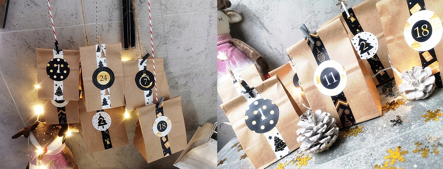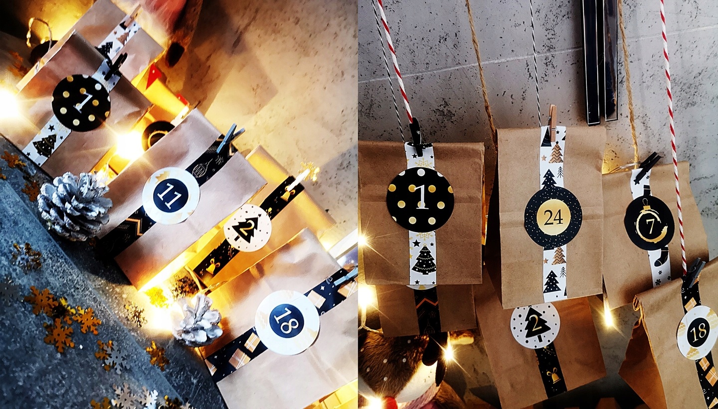Чтобы сделать Адвент-календарь, вам понадобится 24 наклейки с цифрами каждого дня Адвента и 24 декоративные полоски.