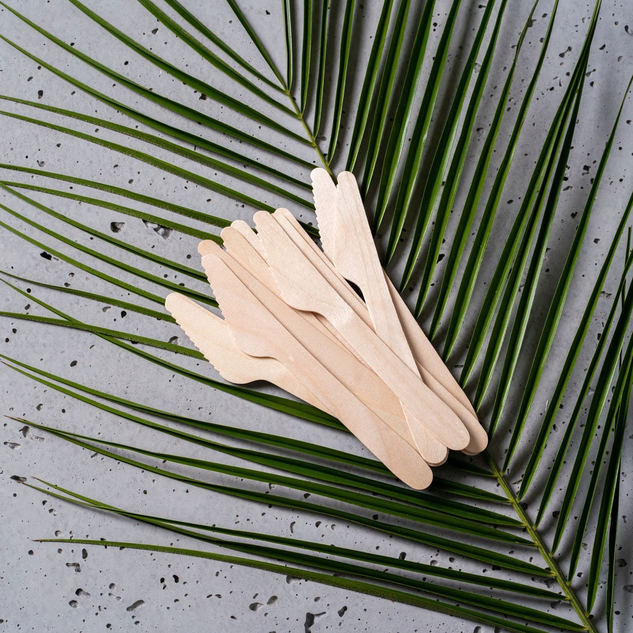 Эко-бумажные тарелки и деревянные столовые приборы на 12 человек.