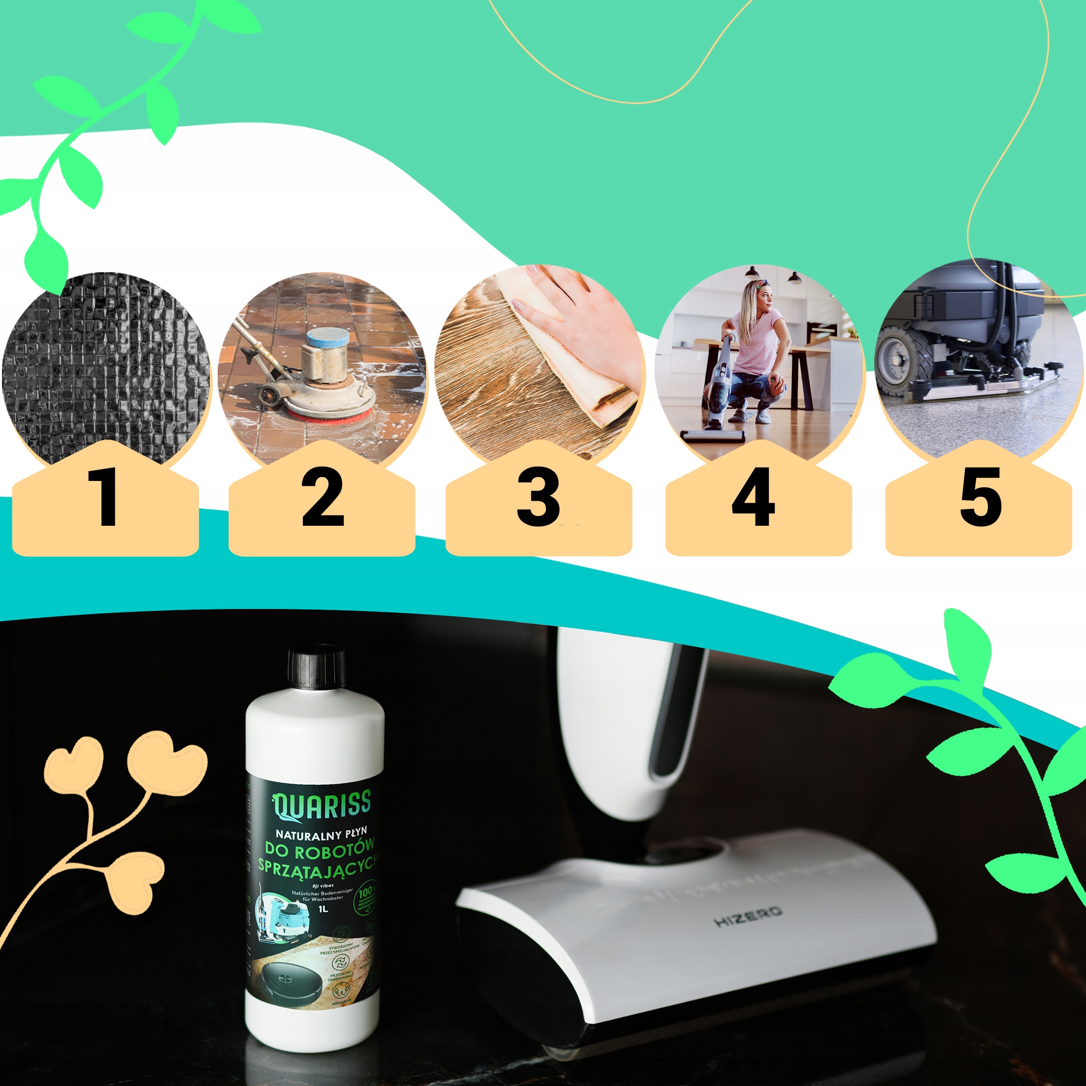 Жидкий концентрат универсального действия, изготовленный на основе веществ растительного происхождения. Предназначен для использования во всех типах роботов-уборщиков с функцией мытья полов, роботов-швабр и пылесосов с функцией мытья. Жидкость предназначена для очистки всех водостойких поверхностей и полов, таких как ПВХ, линолеум, гладкий камень, неглазурованный клинкер, напольная плитка, защищенный паркет, пробка, резина, керамика и металл. Благодаря быстрому высыханию особенно подходит для постоянного ухода за полами, защищенными полимерным покрытием, и поверхностями, к которым приходится прикасаться сразу после мытья.
