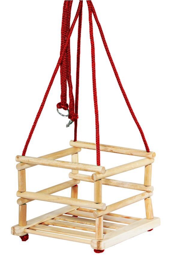 Качели полностью изготовлены из натурального дерева. Благодаря использованию решеток ребенок защищен от выпадения из сиденья.