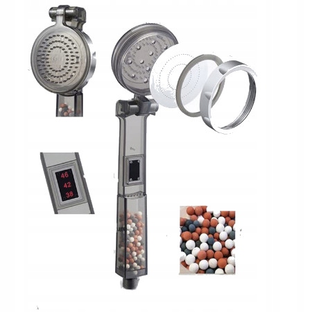 Душевая головка эконом-класса с каменным фильтром и индикатором температуры воды