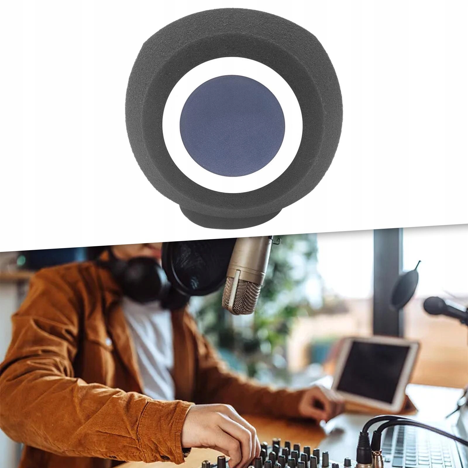 [Универсальное использование]: идеально подходит для использования в небольших студиях звукозаписи или во время прямых трансляций, этот ветрозащитный экран эффективно минимизирует шум ветра и другие взрывные звуки.