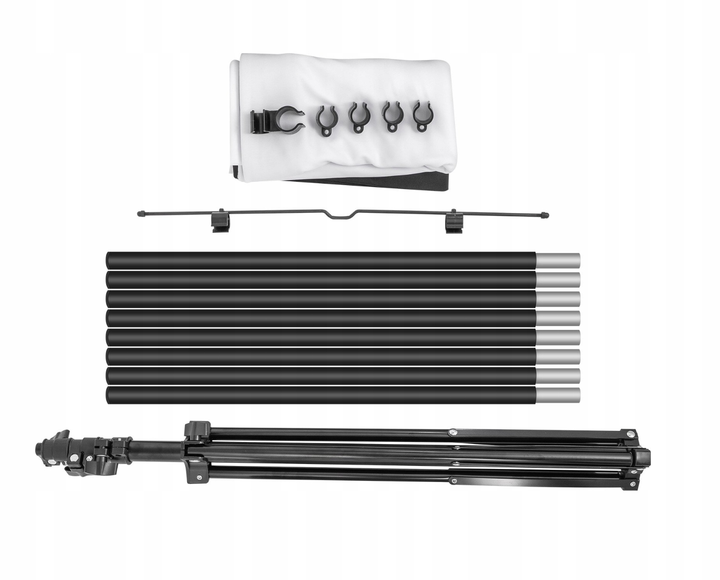 Верхнюю и нижнюю рамы можно сложить на четыре части и храниться вместе с остальными деталями в транспортировочной сумке. Этот проекционный экран с подставкой весит всего 8,4 кг, и его можно легко взять с собой в сад или аудиторию.