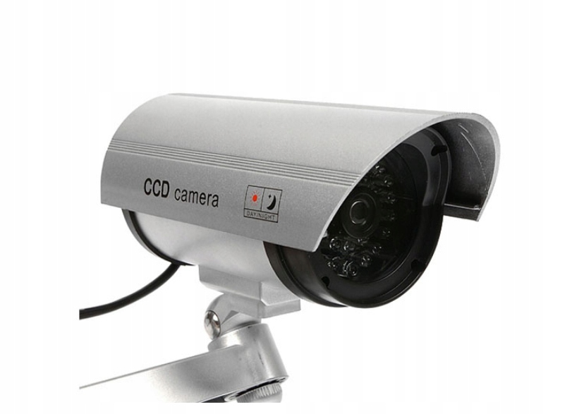 Макет камеры представляет собой качественную имитацию настоящей камеры видеонаблюдения. Мигающий красный светодиод создает впечатление круглосуточного наблюдения.
