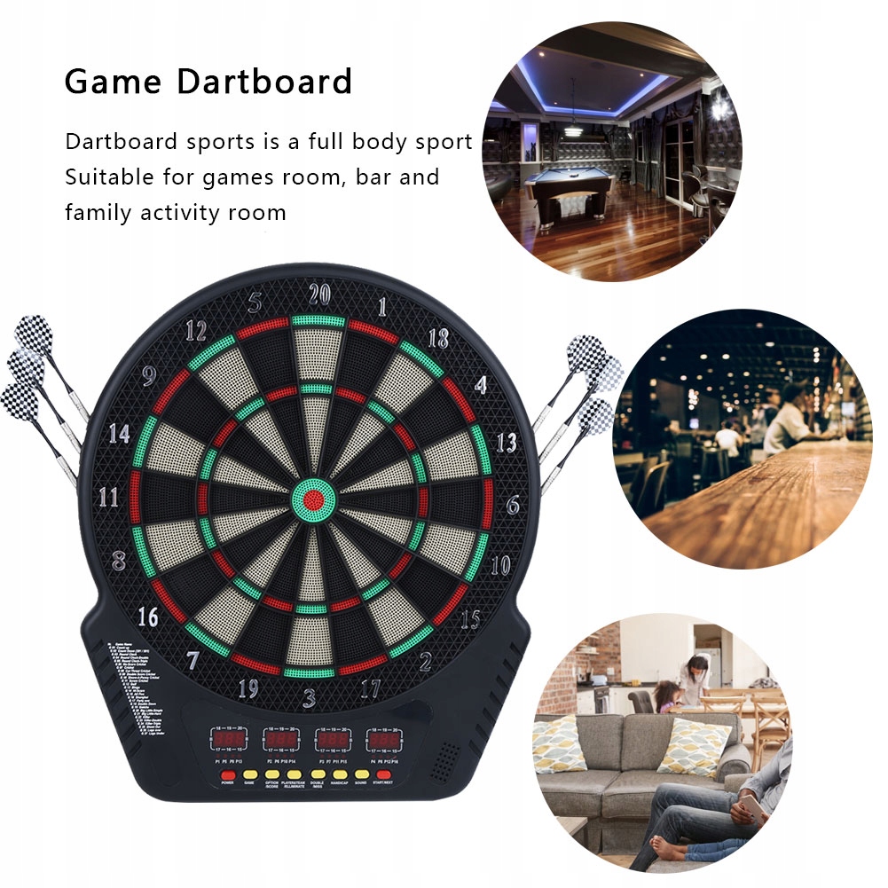 1. Дартс - это спорт для всего тела, очень хорош для офисного фитнеса, подходит для игровой комнаты, бара и комнаты для семейных занятий. 2. В основном участвует в сокращении мышц пальцев, запястья, локтя, плеча, дельтовидной мышцы, трицепса, запястья, мышц пальцев и т. д., особенно для некоторых небольших движений, обычно меньше тренировок мышц, регулируемых, хороших упражнений. 3. Для тренировки зрения целевые виды спорта требуют ритмичного зрения, расслабления, расслабления глаз и снятия усталости глаз, что имеет определенные преимущества. 4. Четыре цифровых светодиодных дисплея могут отображать результаты четырех игроков одновременно. Содержит 27 основных игр и 243 дополнительных игры. 5. Функция паузы в игре, функция энергосбережения во время сна, дротики назад для устранения очков, функция компьютерного боя, функция регулировки громкости семи передач, которую могут использовать 1