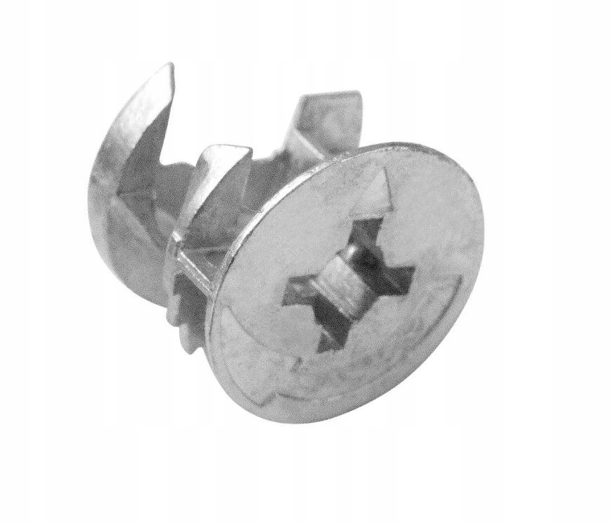Комплект состоит из эксцентрика, используемого для затяжки соединения, и штифта (крючка) с еврорезьбой, вкручиваемого с помощью отвертки непосредственно в отверстие в ДСП или дереве.