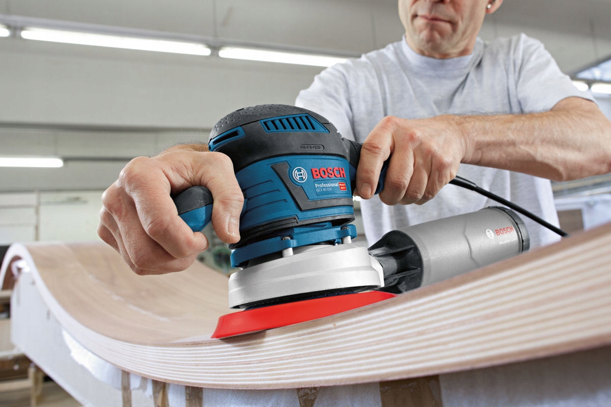 Эксцентриковая орбитальная шлифовальная машинка GEX 40-150 от BOSCH, очень прочная и очень долговечная, но при этом легкая и очень удобная. Предназначен для быстрого и точного шлифования и полировки различных типов поверхностей (плоских и круглых) из дерева, металла, пластика, камня или керамики, покрытых краской, лаком или шпаклевкой.