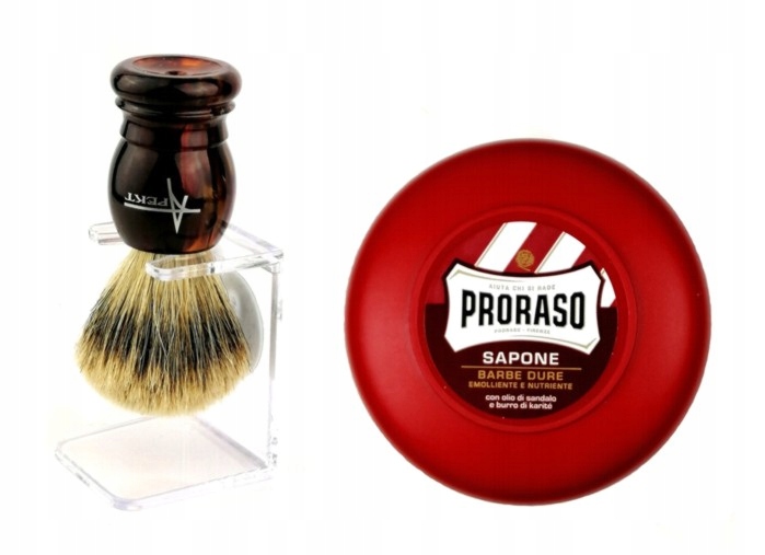 Помазок для бритья из барсучьего волоса (тонкий барсук) на подставке + мыло для бритья Proraso