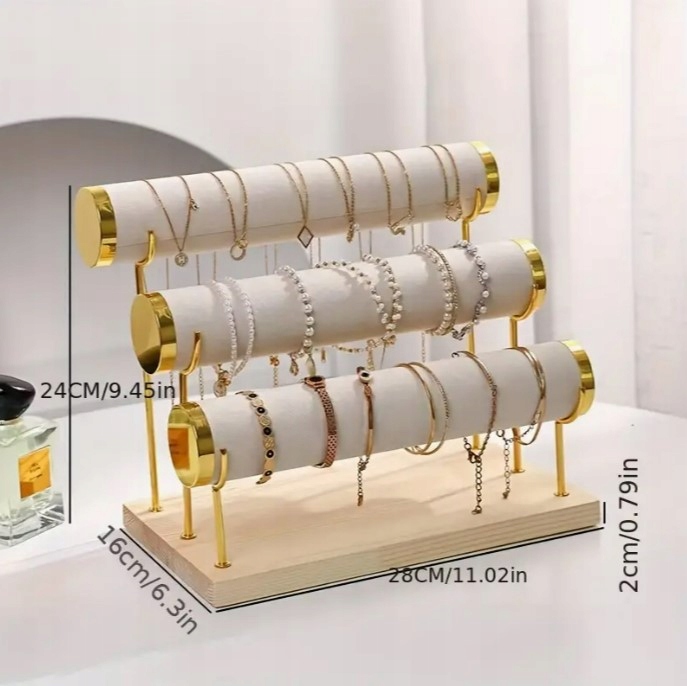 EKSPOZYTOR STOJAK NA BIŻUTERIĘ ZEGARKI BRANSOLETKI 3 POZIOMY ECRU
