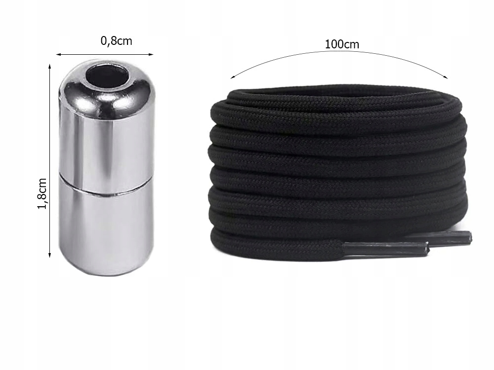 В комплект входят 2 шнурка длиной 100 см и две застежки.