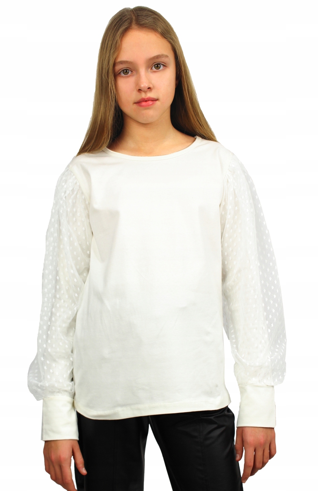 ЕЛЕГАНТНА блуза з фатиновими рукавами в горошок Школа 140