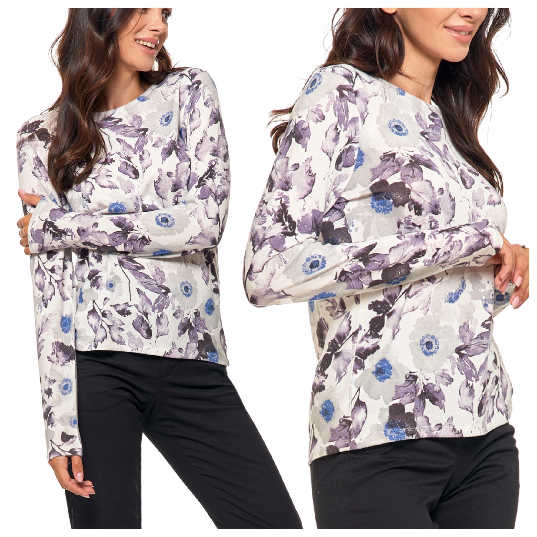 Узор на блузке представляет собой тонкий цветочный мотив в оттенках фиолетового, серого и синего, что дает всю элегантность и легкость. Цветы расположены тонко на ярком фоне, что делает блузку очень свежей и стильной. Это идеальный выбор для женщин, которые ценят комфорт, модную внешность и уникальные узоры в гардеробе.