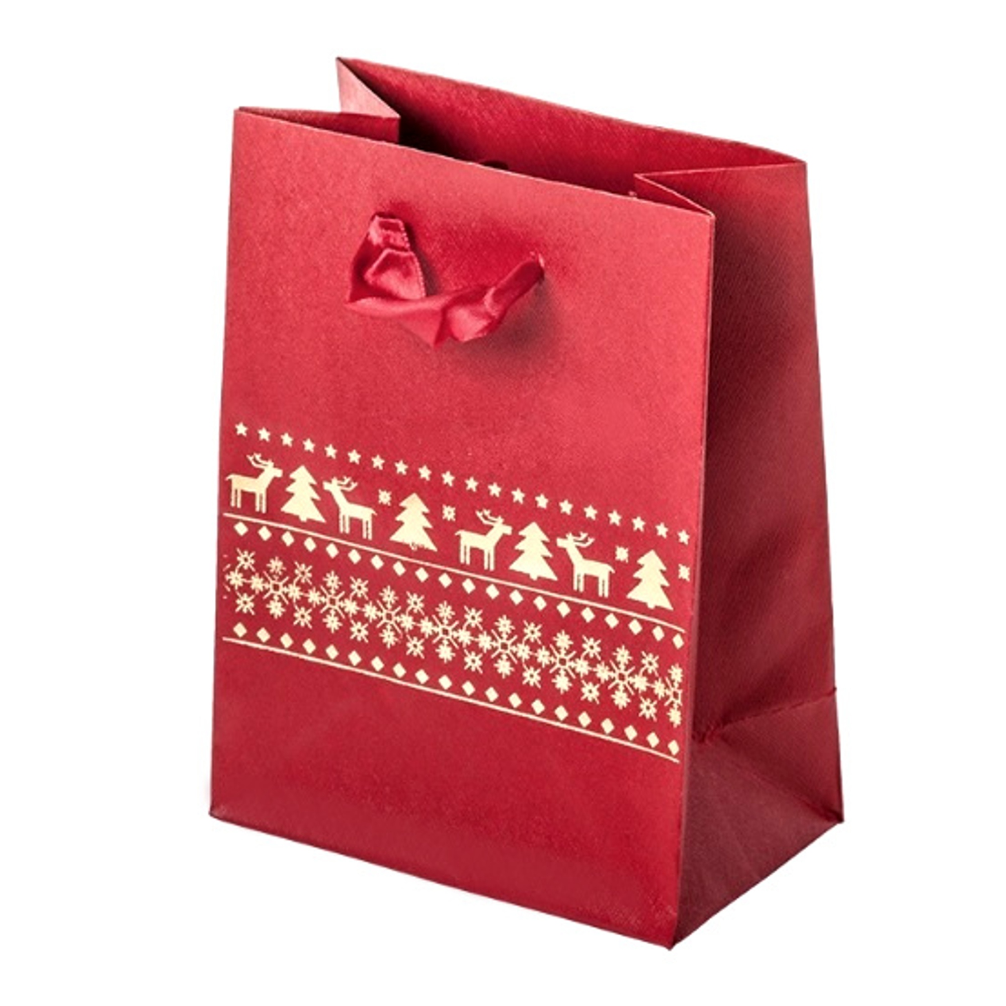ЕЛЕГАНТНА ЧЕРВОНА РІЗДВЯНА ПОДАРУНКОВА СУМКА З ОЛЕНЯМИ ЗІ СТРІЧКОЮ