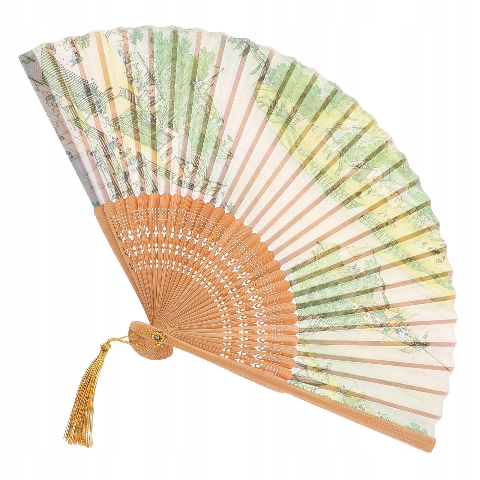 ЭЛЕГАНТНЫЙ КИТАЙСКИЙ ВЕЕР ИЗ ШЕЛКА С РУЧКОЙ БАМБУК, ДЕКОРАТИВНЫЙ