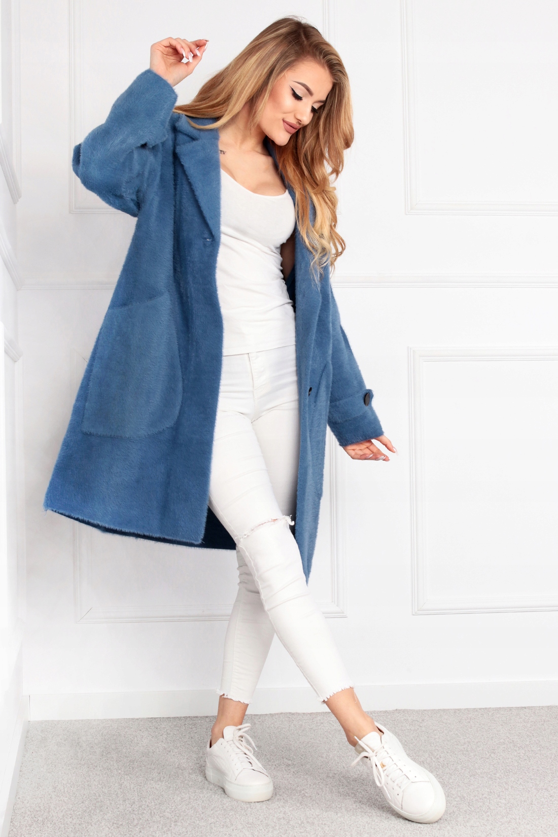 Элегантное пальто модное Alpaka Jacket Heat Sweater Long Press Colors 2017