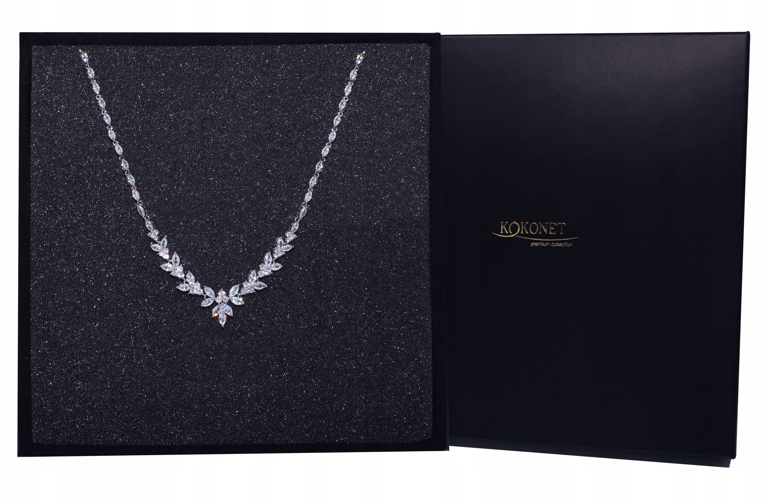 Свадебное колье с бриллиантовыми цирконами листовидной формы – вид свадебных украшений, идеально подходящий к платьям с глубоким вырезом. Вы можете легко сочетать его с подходящими серьгами, чтобы весь образ выглядел целостным и очаровательным. Благодаря своей форме это колье одно из самых часто выбираемых невестами.