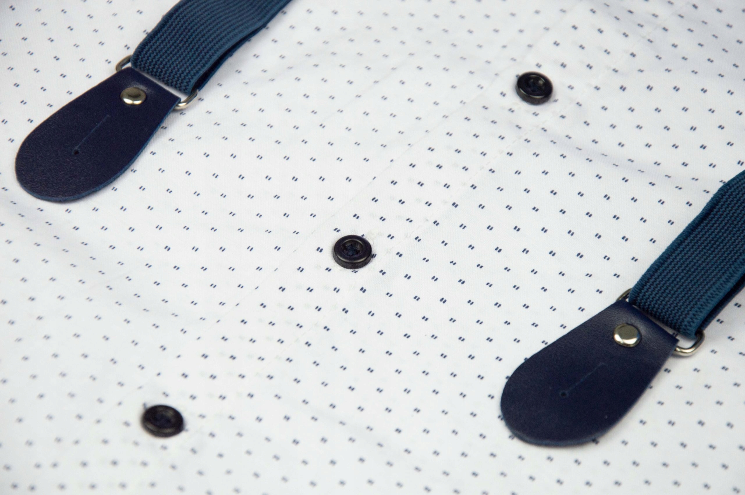 - Темно-синий оттенок выглядит очень шикарно с соответствующим галстуком-бабочкой и подтяжками.