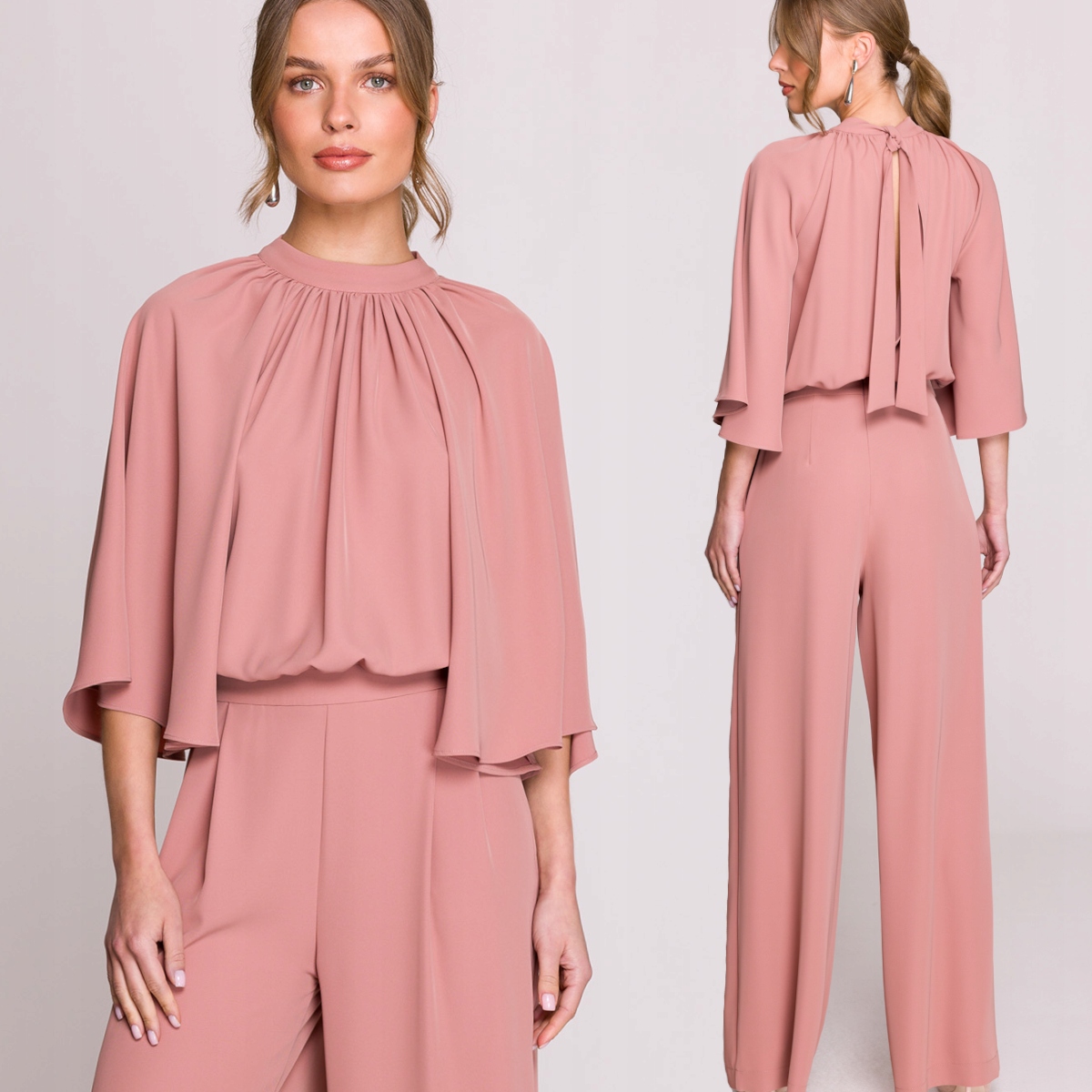 Элегантный женский костюм с широкими рукавами розовый 42 xl