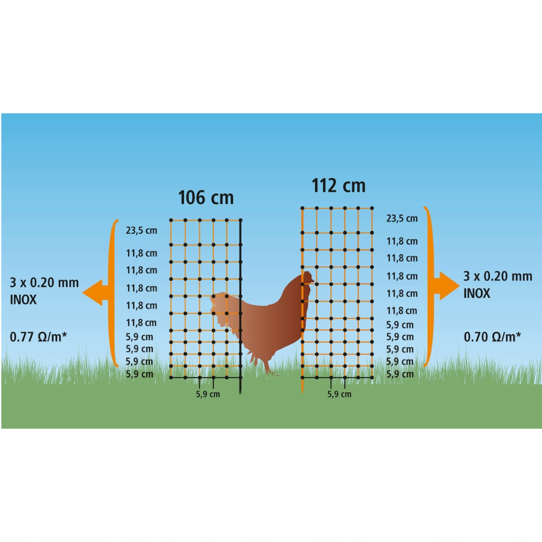Высококачественная сетка, предназначенная для строительства электрического забора, с расстоянием токопроводящих элементов, адаптированным для домашней птицы.Идеально подходит для выращивания таких животных, как куры, гуси, утки. Может также использоваться в качестве элемента защиты от более крупных вредителей, в том числе: лисы или олени. Изделие очень легко собрать или разобрать, поэтому его можно перемещать в удобные места. В сочетании с электрификатором он создает барьер, уважаемый животными. Благодаря насыщенному цвету сетка прекрасно видна с большого расстояния как животным, так и людям.