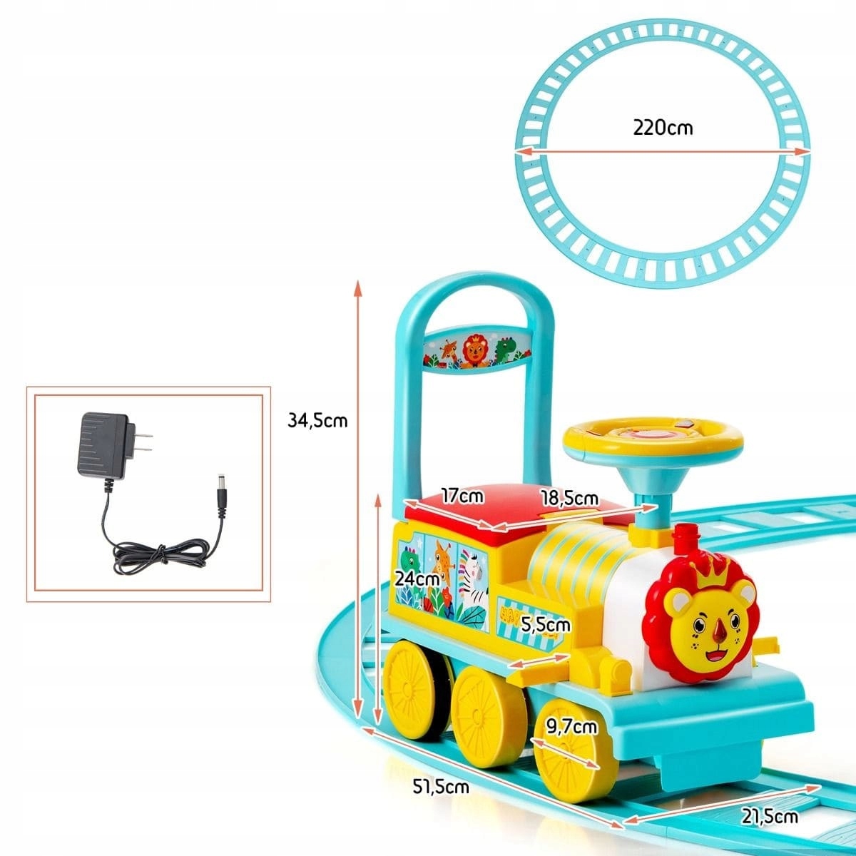 Этот поезд состоит из 16 частей пути, которые могут создать круговой путь длиной 220 см. Этот игрушечный поезд можно использовать не только в помещении, но и на открытом воздухе. Поставив ноги на выдвижные педали, дети будут чувствовать себя более комфортно. Кроме того, спинка и система предотвращения опрокидывания предотвращают неожиданное опрокидывание. С помощью простых установок дети смогут наслаждаться ездой под гудок поезда и яркие огни.