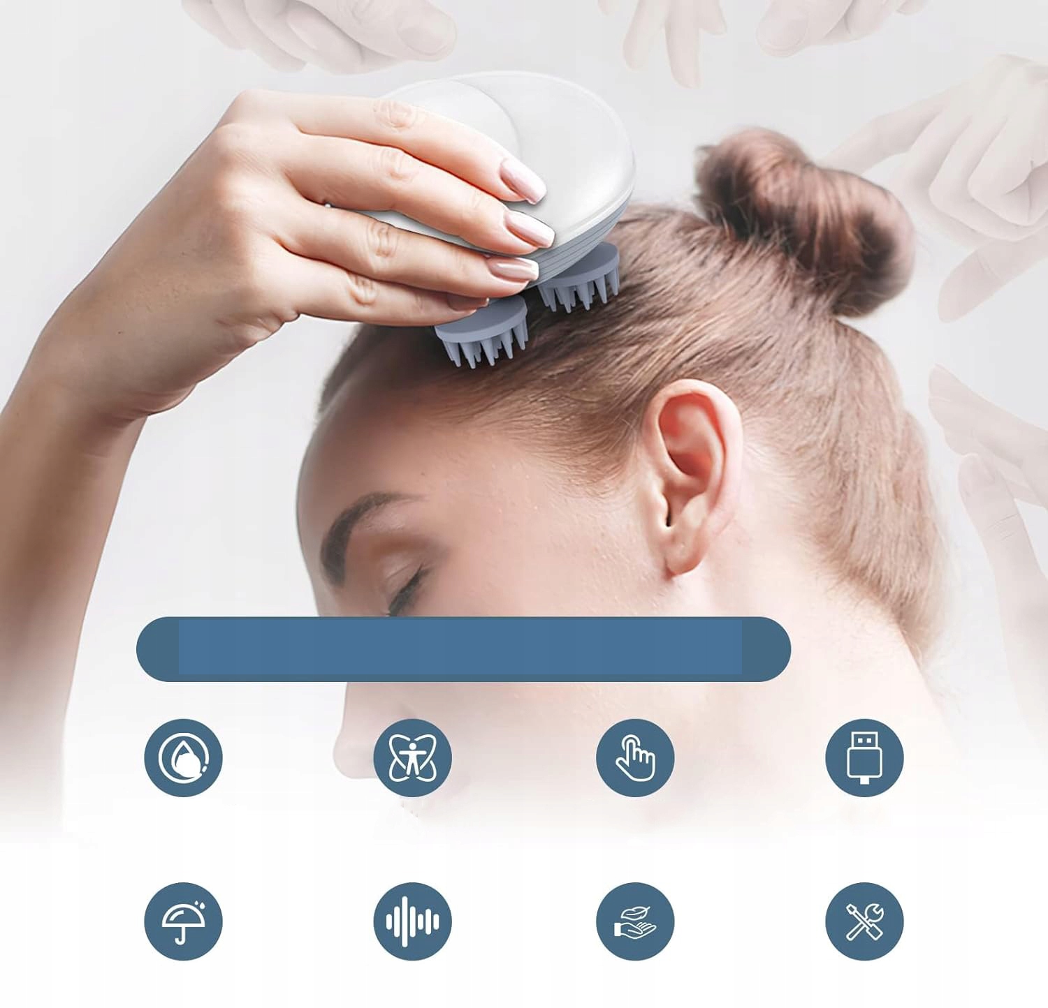 Для людей: Наслаждайтесь глубоким массажем кожи головы на 360° с помощью 4 массажных головок (24 независимых) точек) и 3D-разминание для снятия стресса, улучшения кровообращения и смягчения кожи.