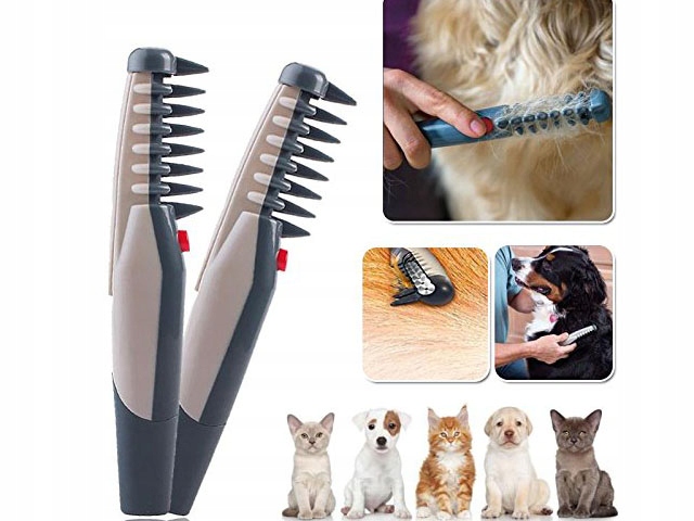 Электрическая расческа для ковриков, предназначена для всех пород собак. Он бережно расчесывает шерсть и рассекает колтуны.Прибор оснащен вращающимися лезвиями, благодаря которым мы легко избавимся от слипшегося, грязного меха.