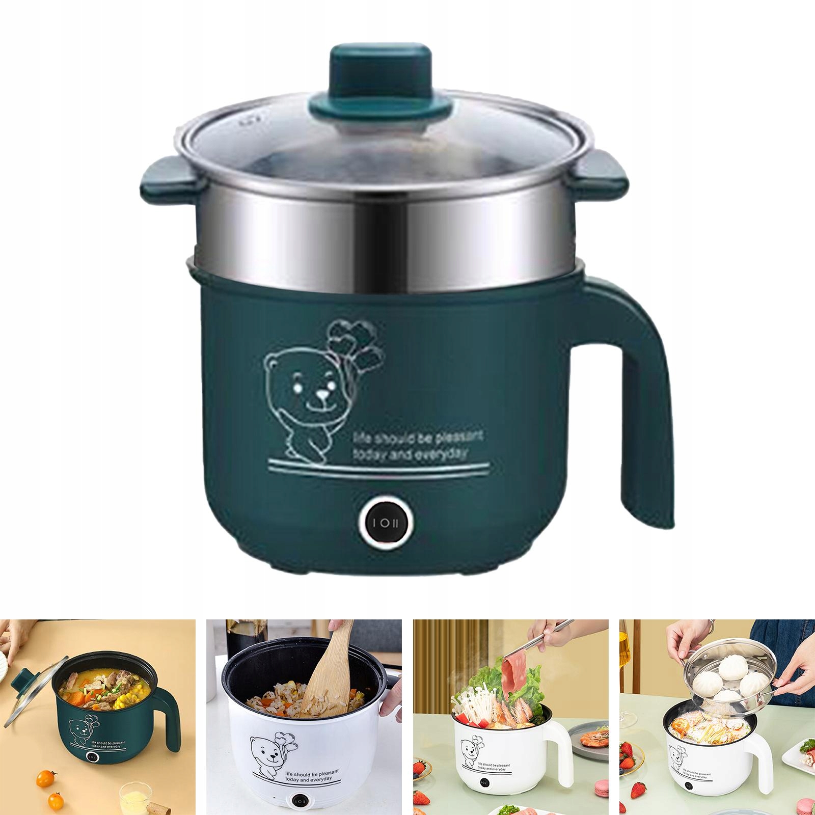 Електрична каструля з антипригарним покриттям і пароваркою Зелена