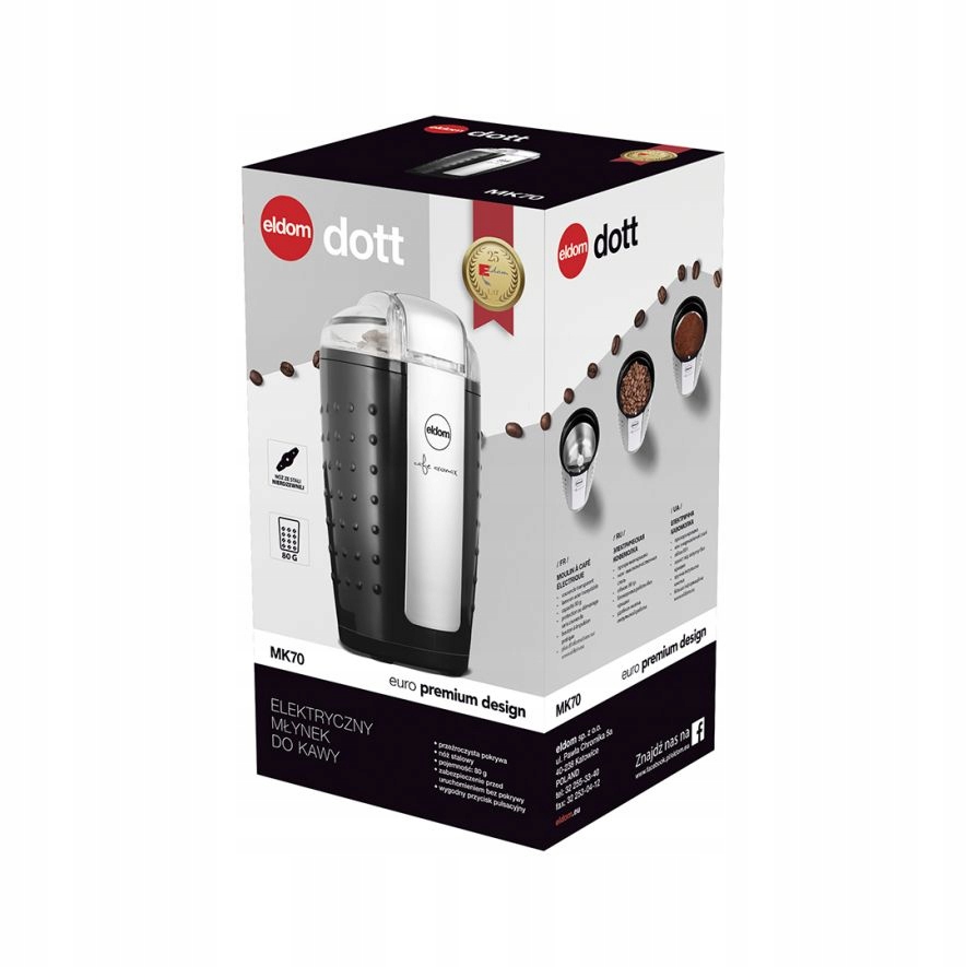 Электрическая кофейная шлифовальная машина Eldom Mk70 прозрачное покрытие Нож из нержавеющей стали емкость 80 g Защита от начала -без покрытия Удобная кнопка пульсации Сила: 200-250 Вт