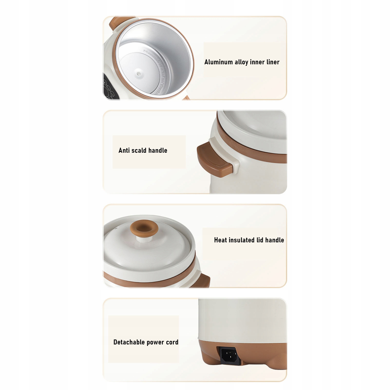 Электрическая керамическая кастрюля объемом 1,8 л, полностью автоматическая, с резервом на 24 часа, 4 квартала