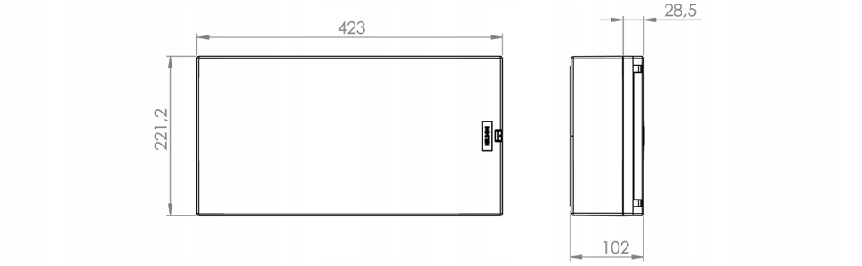 - размеры распределительного щита: 423x221,2x102 мм,