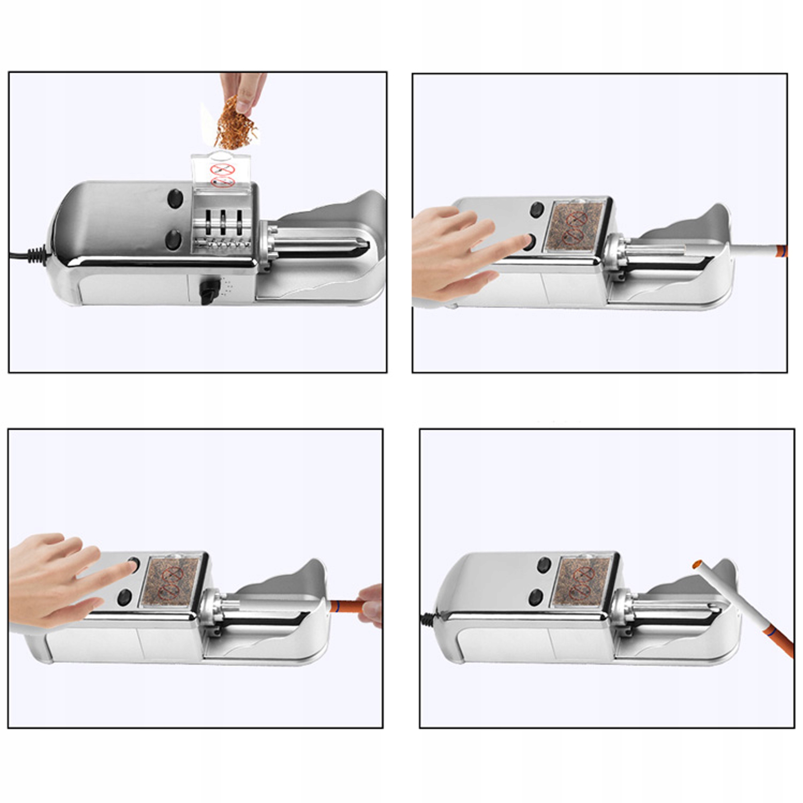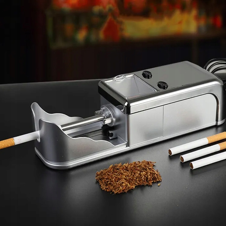 Электрический наполнитель для сигарет — устройство, позволяющее засыпать табак в сигареты с помощью электрического механизма. Наполнитель очень прост в использовании. Все, что вам нужно сделать, это нажать на ручку под направляющей, вставить трубку, наполнить контейнер табаком, выставить плотность наполнения трубки с помощью ручки, нажать кнопку на автомате и ваша сигарета готова. b>