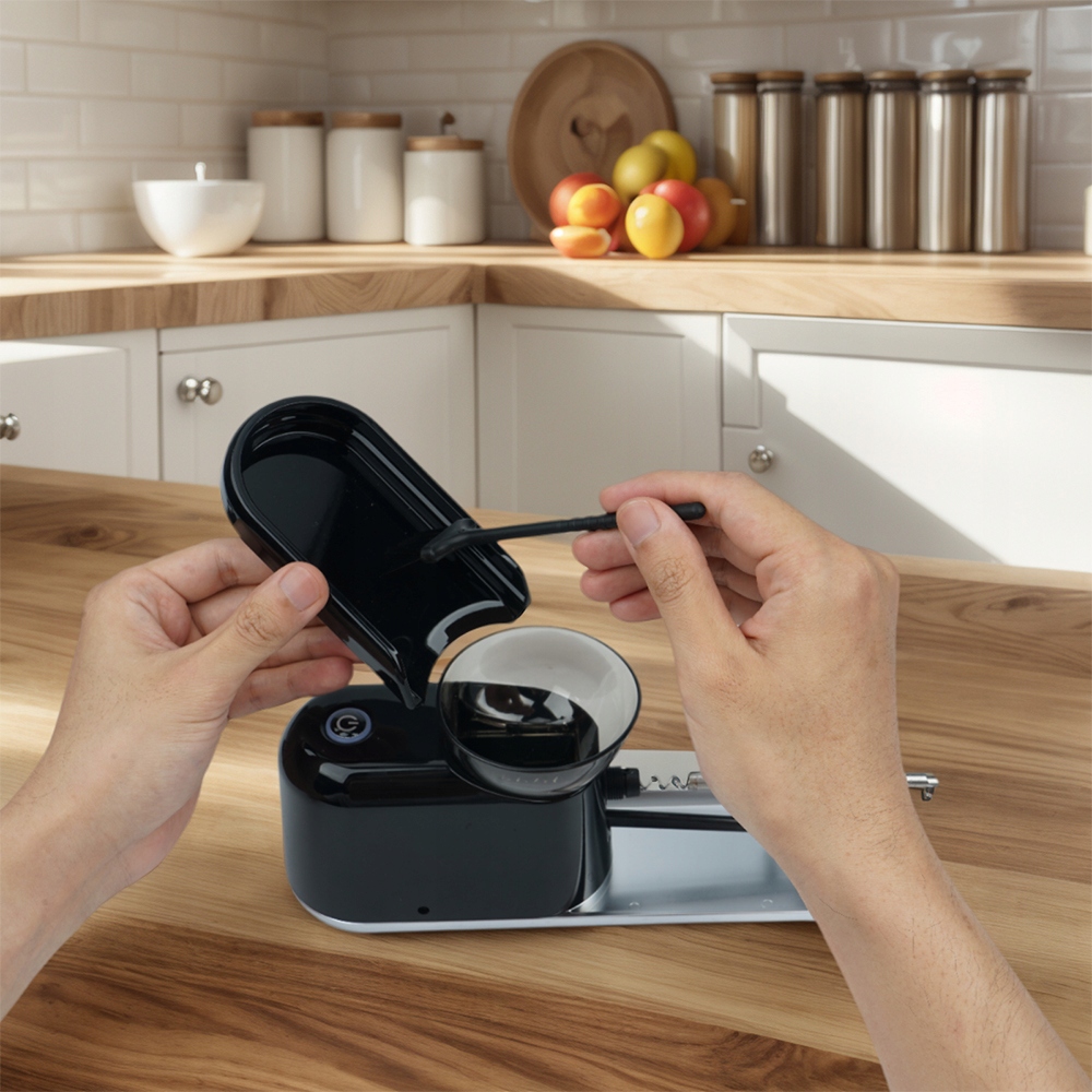 Мы предоставляем мешалку и щетку. После каждого использования аккуратно чистите стенки пробирки для сбора и остатки гашиша в бункере. Это гарантирует более эффективную работу устройства при следующем использовании и предотвращает накопление загрязнений, которые могут повлиять на производительность.